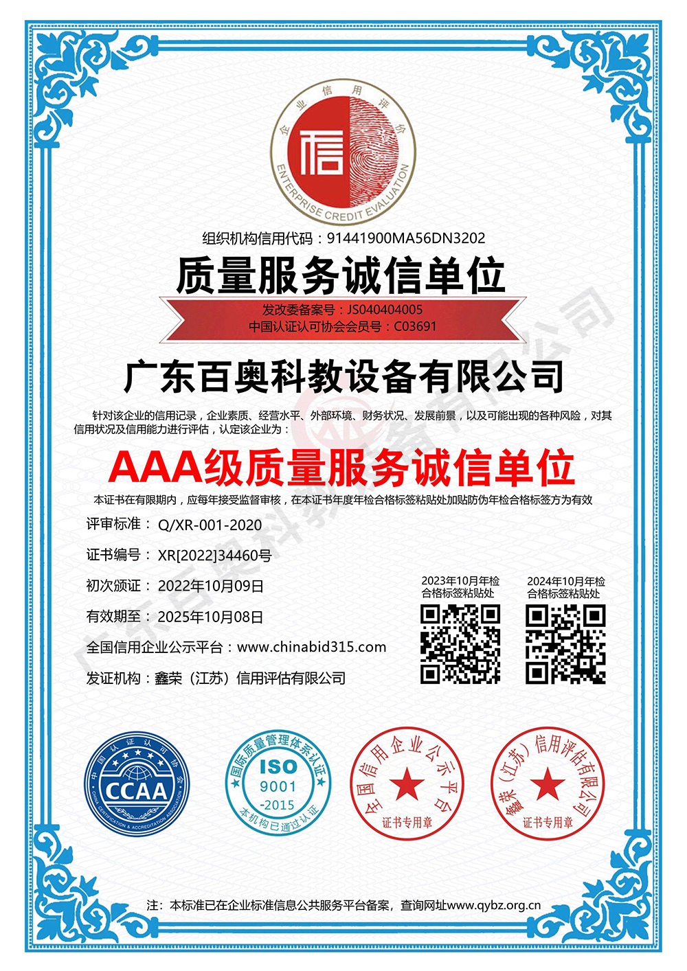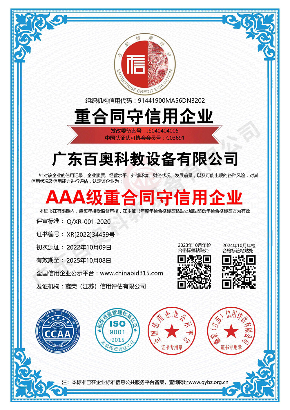 • 資信等級證書